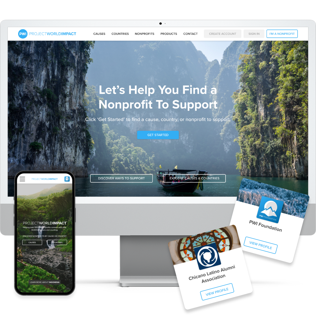 Project World Impact helps thousands of nonprofits connect with people looking for ways they can impact the world’s most fundamental needs. While at Project World Impact, I created various visual assets used in marketing materials, branded and designed nonprofit software and websites, and collaborated developers to finalize nonprofit software and websites.